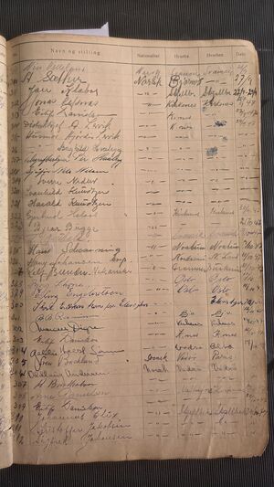 Nr 546 Ankomst: 11. juli 1951 Navn: Roy Carlsen født: 3. april 1921 i Sandnessjøen Stilling: Politibetjent Nasjonalitet: Norsk Hjemsted: Kirkenes Siste oppholdssted: Avreise: Neste oppholdssted: Kirkenes