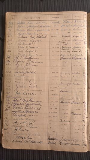 Nr 582 Ankomst: 31. juli 1951 Navn: Marius Tømmerstøl født: 29. juni 1909 i Kirkenes Stilling: Kjøpmann Nasjonalitet: Norsk Hjemsted: Kirkenes Siste oppholdssted: Kirkenes Avreise: 31. juli 1951 Neste oppholdssted: Kirkenes