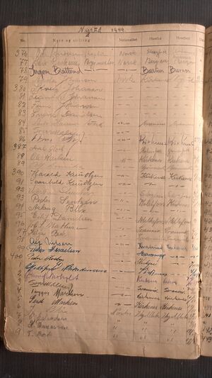 Nr 567 Ankomst: 20. juli 1951 Navn: Sigurd Aartun født: 28. desember 1911 i Bygland Stilling: Politifullmektig Nasjonalitet: Norsk Hjemsted: Kirkenes Siste oppholdssted: Kirkenes Avreise: 20. juli 1951 Neste oppholdssted: Kirkenes