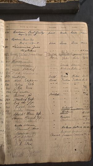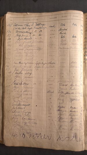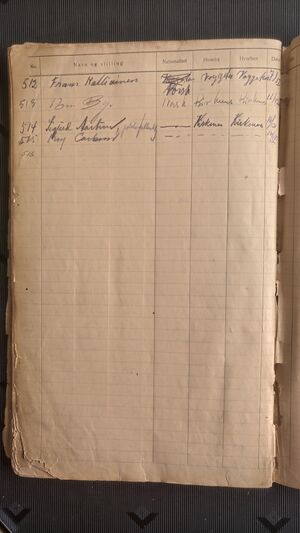 Nr 605 Ankomst: ? Navn: Kaare? Hovden? født: ? i ? Stilling: ? Nasjonalitet: Norsk Hjemsted: ? Siste oppholdssted: ? Avreise: ? Neste oppholdssted: ?
