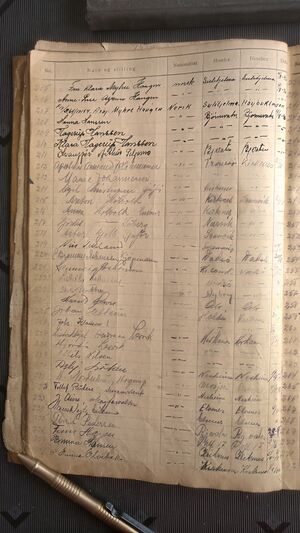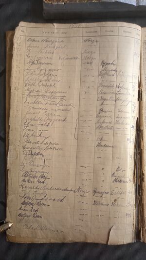 Noen sider mangler i den eldste fremmedboka som ble påbegynt i 1936. Fra år 1939 ser boka hel ut.