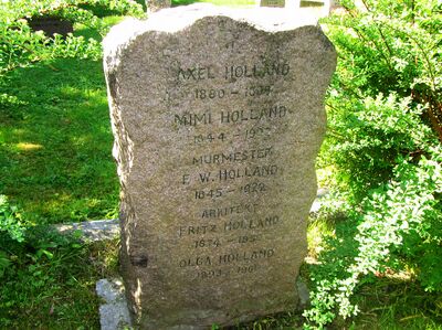 Fritz Holland er gravlagt i familiegrav på Vår Frelsers gravlund i Oslo. Tittelen arkitekt er benyttet på gravminnet.