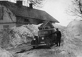 | Frusetenga i 1952. Fredrik Michaelsen med sin Plymouth 1937-modell. | |