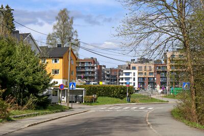 Bebyggelsen er blandet, og består av både småhus, boligblokker og næringsbygg. Mellom 2015 og 2020 startet saneringen av næringsbyggene på vestsiden av veien sør for Kjelsåsveien, og de store boligkompleksene i nr. 42 og 44 var klare for innflytting i 2023–2024.
