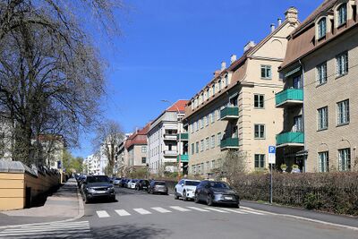 - Nr. 25, leiegård fra 1931, arkitekter Heinrich Jürgensen og Johan von Hanno.Foto: Jan-Tore Egge (2016).