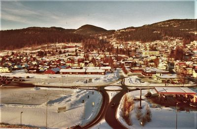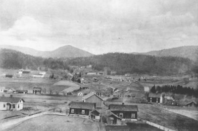 Bygningene på bildet fra 1890 (øverst til høyre) har gitt plass for bank, bensinstasjon og brua over til Storsenteret (nederste bildet). Jordene opp mot Bedehusgata, der Sparebankbygget og parkeringsplassen ligger, tilhørte Herlofsen Rygh, men senere solgt til Krogstad, som brukte jordet som opplagsplass for de store tømmerlunnene.
