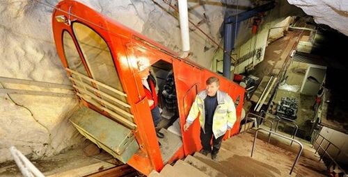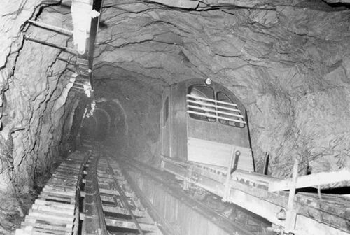 Denne går fra rett innenfor inngangspartiet ved Langefonn til nedre stasjon og besto opprinnelig av en åpen vogn drevet av det samme dieselloket som hadde kjørt ut tunnelmasser til tippen. Senere ble dette erstattet med en batteridrevet elektrisk «trikk» som tok 12 passasjerer. Etter at banen ble åpnet for turister ble det bygget en kopi. De to trikkene er koplet sammen og kan frakte til sammen 25 passasjerer.