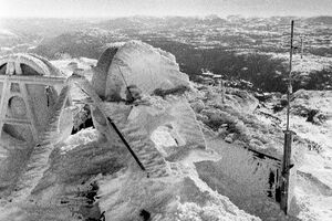 12. august 1957 havarerte dessverre et av helikoptrene, halen traff fjellveggen under lossing på toppen, antakelig på grunn av de vanskelige vindforholdene, det veltet nedover fjellsiden, tok fyr og ble totalvrak. Heldigvis fikk snarrådige anleggsarbeidere reddet mannskapet ut fra det brennende vraket. Kjetil Mårdalen og Arne Bratterud fikk etterpå en utmerkelse av den amerikanske ambassadøren for denne redningen.