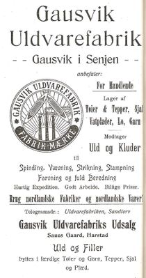 Gausvik Uldvarefabrik ble opprettet 1900 av Christian Frederiksen (født 1865), Melbu.