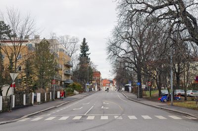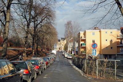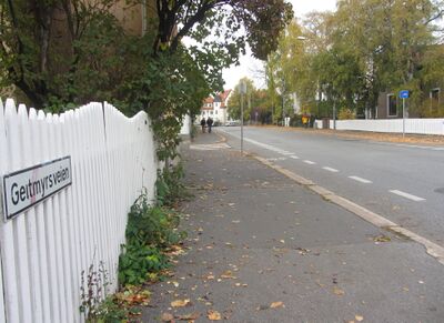 Geitmyrsveien sett nordover fra Anton Schjøths gate. Frølichbyen til venstre.