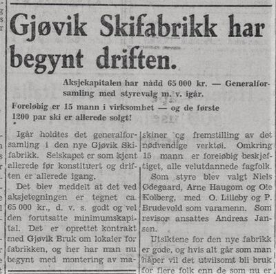 - «Gjøvik Skifabrikk har begynt driften.» Velgeren 1938.05.03. Digital versjon på Nettbiblioteket.