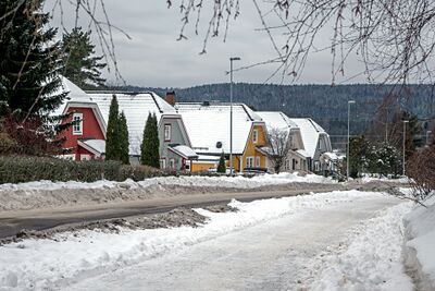 I tillegg til Flåtestad i enden av veien ble det i mellomkrigstiden oppført noen få småhus der veien møter Gjersjøen for første gang, og i 1972 åpnet Dalens gartneri. Omtrent samtidig med at Skiveien fikk ny traséføring på 1980-tallet, startet også utbyggingen av Sætre/Haugbro-området på den daværende grensen mellom Oppegård og Ski kommuner. Da ble blant annet de kjedede eneboligene i Gjersjøveien 9–25 oppført, og omkring 2009 måtte Dalens Gartneri vike plassen for ytterligere boligbygging.