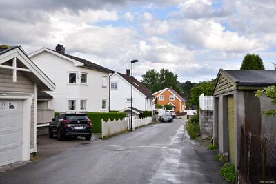 Veien ble navnsatt i 1952. Bebyggelsen består av seks bolighus.