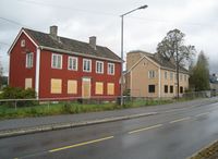 Grorudveien sett nordover fra Pastor Blaauws vei. Til venstre «Kommunegårdene» nr. 3 og 5 før rehabilitering.