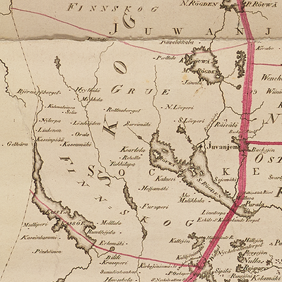 På norsk side av riksgrensa var Grue Finnskog den bygda der det finske språket overlevde lengst. De aller fleste av de siste finsktalende på Finnskogen var hjemmehørende på svensk side av grensa, men det var også noen få i Grue Finnskog som behersket språket. Den svenske språkforskeren Karl Bernhard Wiklund undersøkte det finske språkområdet i 1894, og fant at det kanskje var «några få tiotal» som snakket finsk her på den tida.[2] Kartet hans viser at han hadde funnet finsktalende personer på rundt 15 bruk øst i bygda, i grenseområdet fra sør for Røgden og nord til grensa mot Hof Finnskog.