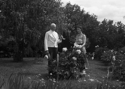 Gudbrand Kjølseth og danselærer Rigmor Glykstad i hagen på Skaugerud ca. 1935.