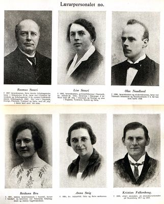 Lærarane var ved sida av Stauri sjølv, cand. filos. Idius Nybø og Lise Høie (seinare Stauri).