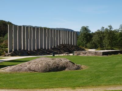 Dagens Gulatinget med scene og Bård Breiviks installasjon.