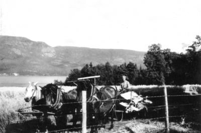 | Gunhildrud fotografert fra båt ute på Eikeren. Vi ser klyngetunet, som omfatter husene på både bnr. 1 og bnr. 2. Rett ovenfor gården ser vi fjelltoppen Gunhildrudknatten. | |