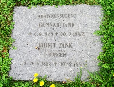 Gunnar Tank er gravlagt på Vår Frelsers gravlund i Oslo.