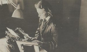 | "Jeg var jo kontordame og hadde skrivemaskin. Og så hadde jeg nettopp sluttet på rådmannskontoret og begynt på husmorskolen. Men så hadde jeg nøkkel til kontoret mitt, så det er nokså vittig å tenke på at vi gikk sene kvelden, etter de andre var gått fra kontoret, låste oss inn og lista oss opp i Rådhuset. Og kontoret mitt var oppe i øverste etasje hvor det er sånne halvmånevinduer. Der satt vi og skrev koder altså." | ||