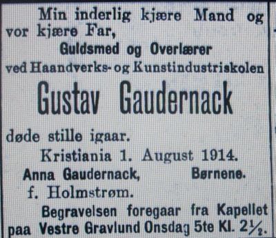 Gaudernack døde sommeren 1914 etter en mislykket blindtarmoperasjon. Hans enke overtok verkstedet og to av hans sønner tegnet nye modeller.