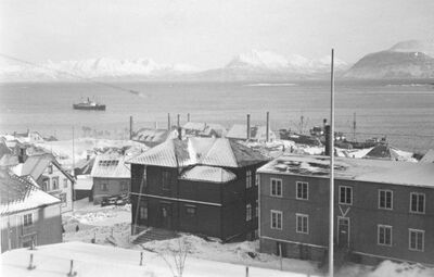 | 12 | Hålogalandsgate 12 A fungerte i 1940- og 1950-åra som «rådhus» for Trondenes kommune. I første etasje holdt herredskassereren til og i andre etasje var det ordfører- og likningskontor. Kommunens bibliotek var også her. Foto: Gunnar Reppen 2009. på 1960- og 1970-tallet bodde Johanne Lund her. Hun drev moteforretning i Strandgata 7. | |