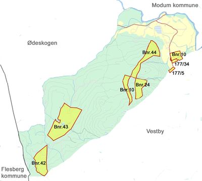 Bruksnummer 10 ble dermed bare bestående av innmarken og et skogstykke på 66 dekar. Skatteskylden ble redusert til 74 øre.
