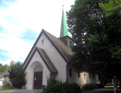 Kirken ble ombygd i 1966, og har 168 sitteplasser. Taket er tekket med skifer, og takrytterne, som markerer kirkegårdens hovedakse, er tekket med kobber.