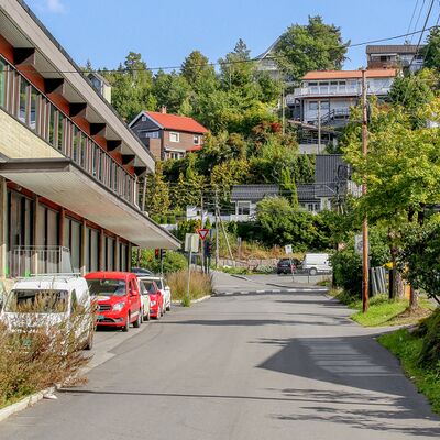 Parti fra Høydalsveien i Oslo. Den mørke bygningen som skimtes i bakgrunnen har adresse til Øvre Prinsdals vei, og huser skolefritidsordningen ved Prinsdal skole.