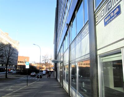 | 6 | 1959–1961 | Forretningsgård | Bygning på ni etasjer, ark. Gudolf Blakstad og Herman Munthe-Kaas. Tårn med klokke og mosaikkfasade. | |