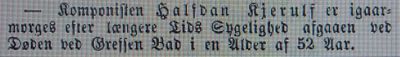 Kierulf døde på kurstedet Grefsen Bad etter en tids sykdom