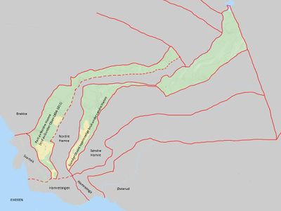 - ↑ Skjøde fra Hans Peter Andersen Østerud til Kristoffer Andersen Hamre for kr.10.400, dat 31.10.1889, thl. 9.11.1889