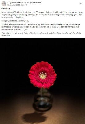 På bursdagen til hvert terroroffer setter 22. juli-senterets ansatte setter en blomst i resepsjonen, tar bilde av den og legger ut en minnetekst på sin Facebook-side.