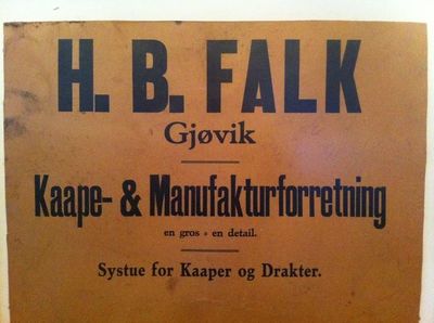 H. B. Falk bygde i 1858 en gård i krysset Hunnsvegen-Storgata, et sted som etter hvert ble kalt Falkehjørnet. Han dreiv med landhandlerbevilling, som ble utvidet til handelsborgerskap da Gjøvik fikk bystatus, og fikk dessuten borgerbrev som skreddermester i 1875.