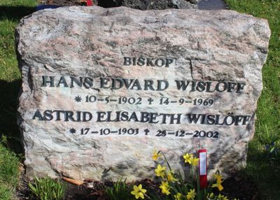 Hans Edvard Wisløff er gravlagt på Vår Frelsers gravlund i Oslo. Tittelen Biskop er benyttet på gravminnet.