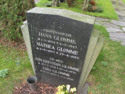 Hans Glømme er gravlagt i familiegrav på Vestre gravlund i Oslo. Tittelen Professor dr. er benyttet på gravminnet.