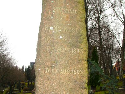 Hans Hein Theodor Nysom er gravlagt på Vår Frelsers gravlund i Oslo. Tittelen Statsraad er benyttet på gravminnet, som har form av en bauta.