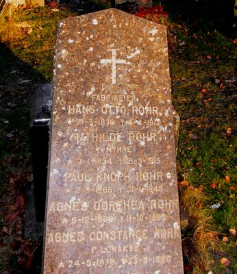 Hans Otto Røhr er gravlagt på Vestre gravlund i Oslo. Tittelen Fabrikeier er benyttet på gravminnet. I en nekrolog i Aftenposten 4. april 1912 ble han omtalt som Grundlæggeren af kjexindustrien her i landet.