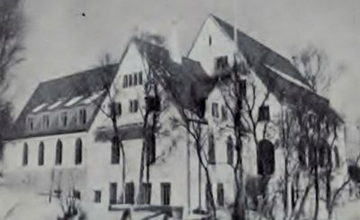 Skolebygningen slik den opprinnelig så ut med tilbygget fra 1937-1938.