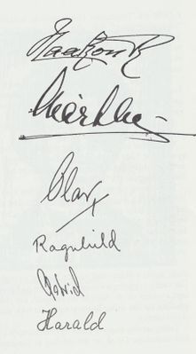 Under kongebesøket i Harstad en vakker sommerdag 1950 ønsket hele kongefamilien å besøke skolen. Som takk for besøket kvitterte de med sine signaturer - en gest som skolen har tatt vare på.