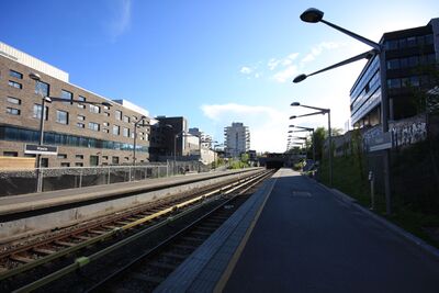 Stasjonen ligger oppe i dagen og er 4,6 km fra Stortinget stasjon.