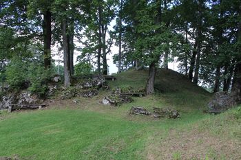 Lengst i nord på feltet er det en bratt kalksteinsknaus, der man finner en toppa rundhaug (haug 1), som er bygd av jord og rundkamp. Midten av denne er utgravd, og det er også spor etter mindre utgravninger på den nordøstre sida. Den er omkring 13 meter i diamenter, med høyde på 3,5 til 4 meter. Haug 2 er også bygd av jord og stein. Det er noen spor etter graving, og trolig har den blitt planert noe i forbindelse med parkmessig opparbeiding av området. Denne haugen er 10 meter i diamenter, og 1,4 meter høy. Haug 3 er en toppa rundhaug, 10 meter i diameter og 1,4 meter høy. En stor del av østsida av denne er fjerna, så bare halve haugen ligger igjen.