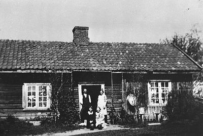 Ifølge notatene til gardbruker Ole Christian Haug ble husa oppført i 1849. «Materialerne er antagelig af et Stabur paa Haug. Stuen var 10 Alen lang og 9 Alen bred 3 1/2 Alen høi. Skaalen var hengt paa Veggen paa østre ende af Stuen. Laden 12 Alen lang 8 Alen bred 3 Alen høi der stod udi bakken med et lidet Fjøs under. Stuen og Laden tegeltekt. Dører og Glaser var antagelig af den gamle nedre Bygning paa Haug.» Det hørte 15 1/2 mål jord til, halvparten dyrka.
