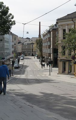 Det er trikketraségjennom gata fra Parkveien til Bogstadveien. I den nedre delen er det gatetun fra Sven Bruns gate til Parkveien. Strekningen mellom Josefines gate og Professor Dahls gate ble tidligere kalt Smithebakken.