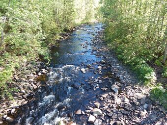 | Heggelielva sett oppstrøms ved Ospeskogveien en sommerdag med lite vannføring. Foto: Jan-Tore Egge (2015).