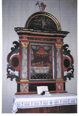 Ho vart bygd i 1671. I 1785 skreiv Johann Michael Lund: «- er en liden vakker Bygning. Den har Taarn og Spiir, og udvendig er (den) rød malet.» Han fortel og kor fint den ligg ved sidan av elva. Vi har ei teikning frå 1845 av lensmann Lars Abraham Qvisling som var nabo, teikninga syner små spir, men ikkje tårn. (Skilling-Magazin No. 19 Løverdagen den 10de Mai 1845) Mogleg har det vore ein takryttar som rotna og vart fjerna.