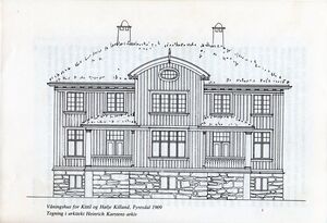 Våningshuset på Uppistog Kiland i Fyresdal, tegning fra 1909 i Heinrich Karsten sitt arkiv.