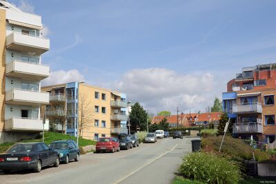 Navnet ble vedtatt i 1923. Bebyggelsen domineres av tre 9-etasjes høyblokker med 54 leiligheter i hver (nr. 1, 3, og 7), oppført 1954–1955 av Iver H. Jones Entreprenørforretning.