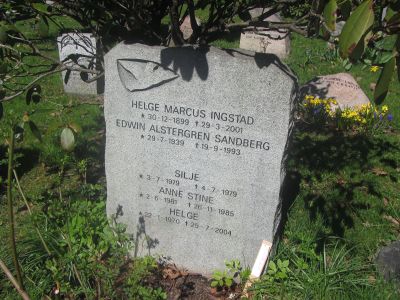Helge Ingstad er gravlagt på Ris kirkegård i Oslo sammen med svigersønnen Edwin Alstergren Sandberg (gift med Ingstads datter Benedicte), og tre yngre familiemedlemmer, men ikke kona Anne Stine, som døde noen år før ham.